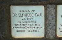 Dr.med. Elfriede Paul, geboren am 14.01.1900 in Köln, gehörte zum Freundes- und Widerstandskreis um Harro Schulze-Boysen, ihre Arztpraxis war ein Treffpunkt der Gruppe. Auch sie wurde am 16.09.1942 verhaftet. Nach Untersuchungshaft im Polizeipräsidium am Alexanderplatz wurde sie am 6.2.1943 zu sechs Jahren Zuchthaus verurteilt. Sie war inhaftiert im Frauengefängnis Charlottenburg, Frauenzuchthaus Cottbus, Frauengefängnis Leipzig-Kleinmeusdorf - dort wurde sie am 19.4.1945 befreit.