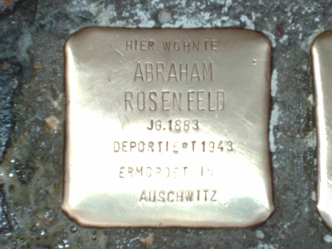 Nach einigen Tagen im Sammellager brachte die Gestapo Abraham Rosenfeld in den frühen Morgenstunden des 3. März 1943 zum Bahnhof. Zusammen mit 632 jüdischen Männern und 1118 jüdischen Frauen wurde er direkt nach Auschwitz -Birkenau deportiert. Dieser „33. Osttransport“ erreichte das Konzentrationslager noch in der gleichen Nacht. Vor Ort wurden 517 Männer und 200 Frauen aussortiert, die im Lager Zwangsarbeit verrichten mussten. Die anderen 1033 Menschen wurden sofort nach ihrer Ankunft in den Gaskammern ermordet. Die Spur Abraham Rosenfelds verliert sich hier.