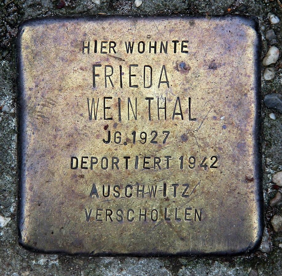 Die Familie Weinthal gehörte zu den 199 Berliner Juden, die am 11. Juli 1942 mit dem „XVII. Teiltransport“ nach Auschwitz deportiert wurden. Die Familie wurde dort ermordet, Frieda Weinthal war damals 15 Jahre alt.