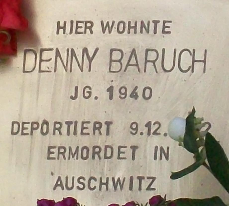 Heimann Baruch war 48 Jahre, Erna Baruch 39 Jahre alt geworden. Denny ist mit 2 ¾ Jahren umgekommen. Die Stolpersteine in der Schulzestraße 14 sollen an ihr Schicksal erinnern.