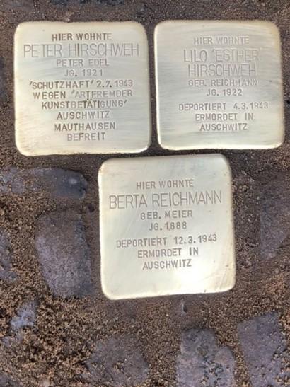 Hans-Peter Edel-Hirschweh musste wie seine Frau Lieselotte (geb. Reichmann) als „Halbjude“ ab 1941 Zwangsarbeit in der Rüstungsindustrie bei Siemens & Halske leisten. Er beteiligte sich am antifaschistischen Widerstand, woraufhin er am 13. Januar 1943 verhaftet wurde. Mit diesem Datum endete – wie aus einem autobiografischen Lebenslauf hervorgeht – die Zwangsarbeit. Zeitweilig wieder aus der Haft entlassen, wurde Hans-Peter Edel-Hirschweh am 2. Juli 1943 erneut verhaftet. Dem KZ Großbeeren, der ersten Station seines Leidensweges nach der erneuten Festnahme, folgten die Konzentrationslager Auschwitz, Sachsenhausen, Mauthausen, Redl-Zipf und Ebensee. Lebenslang trug er am linken Arm tätowiert die Auschwitz-Häftlingsnummer 164145. Seine Frau Lieselotte „Esther“ Hirschweh wurde in Auschwitz ermordet.