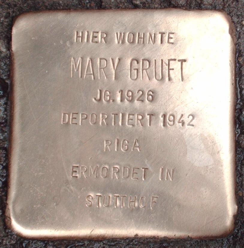 Mit ihrer Mutter, Gisela, Any und Sony lebte Mary Gruft Ende der 1930er-Jahre in der Steinstraße 12 in Berlin-Mitte in der ersten Etage. Gisela floh im Juni 1939 nach Palästina.