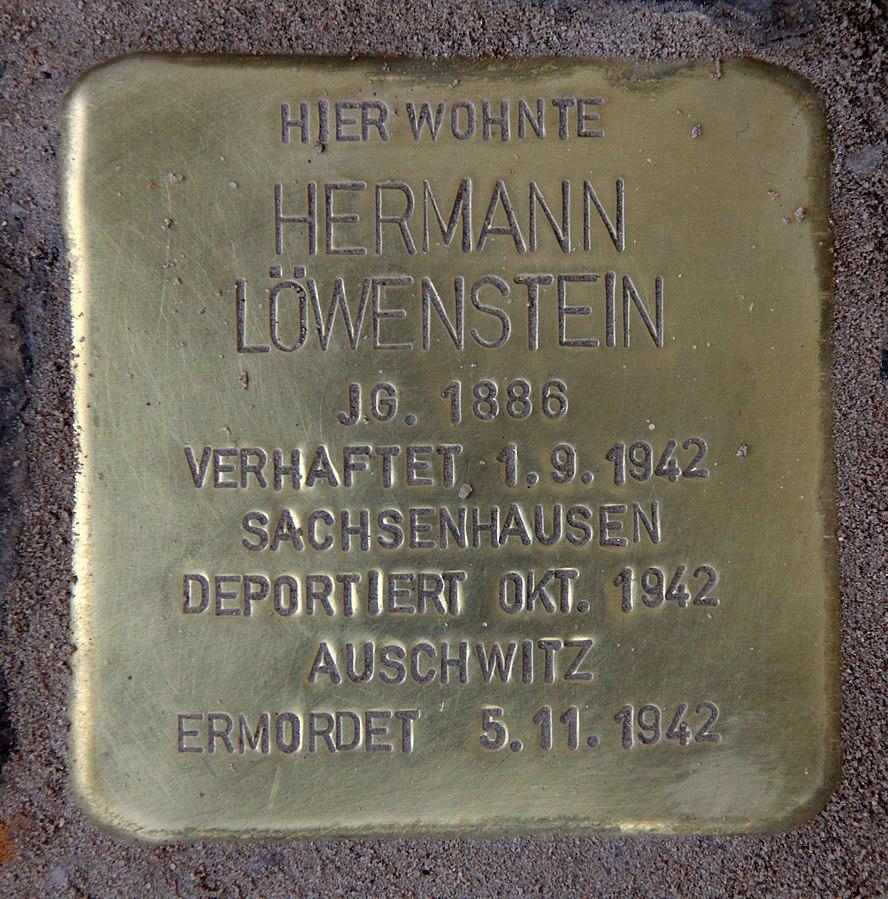 Nach seiner Entlassung wurden die Löwensteins nochmals zwangsweise umquartiert in eine kleine Wohnung in der Prinzregentenstraße 75. Hier holte die Gestapo Hermann Löwenstein am 1.9.1942 ab – möglicherweise im Rahmen einer Racheaktion gegen Juden nach der Ermordung von Reinhard Heydrich – und deportierte ihn in das KZ Sachsenhausen . Von dort wurde er im Oktober 1942 in das KZ Auschwitz deportiert. Ende 1942 erhielt seine Frau Lucie eine Mitteilung des Deutschen Roten Kreuzes mit seinem Todesdatum, dem 5.11.1942.