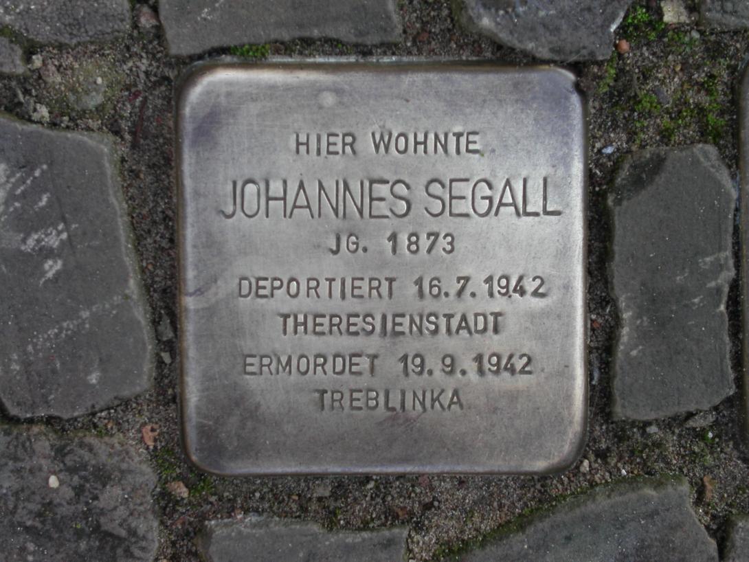 Johannes Segall und seine Frau Rahel hatten im Haus Sybelstraße 35 eine kleine Wohnung. Johannes Segall wurde am 1. August 1873 in Marienwerder (Westpreußen) geboren und wurde 1941 als Kaufmann im Berliner Adressbuch geführt. Seine Frau Rahel, geb. Neumann, wurde am 22. August 1875 in Preußisch Friedland (Westpreußen) geboren.