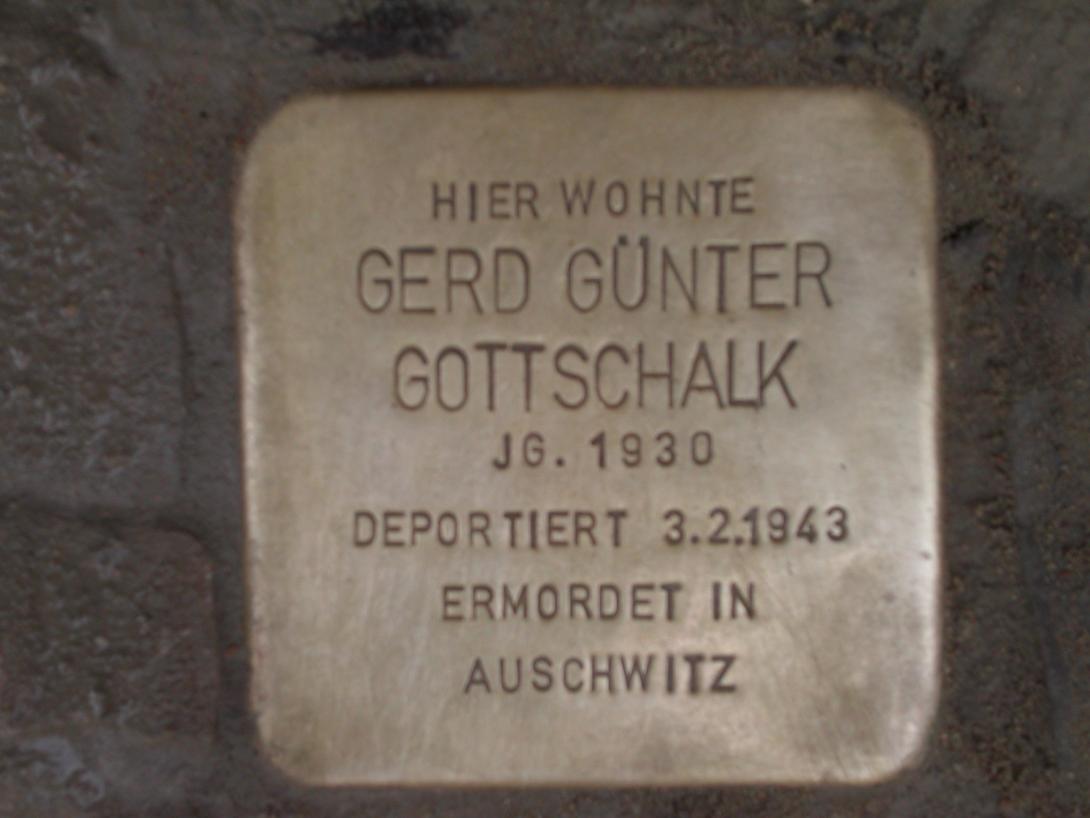 Helmut (manchmal auch Helmuth geschrieben) Gottschalk ist am 9. Oktober 1892 in Magdeburg geboren, Käte (auch Käthe geschrieben) Gottschalk, geb. Hirschfeld, am 17. September 1894 in Bielefeld. Am 15. Dezember 1930 wurde in Berlin der Sohn Gerd-Günter Gottschalk geboren. Alle drei wurden, vermutlich aus ihrem Unterschlupf in der Witzlebenstraße, zunächst in die Hamburger Straße 26 transportiert und nach der Registrierung am 3. Februar 1943 nach Auschwitz deportiert.