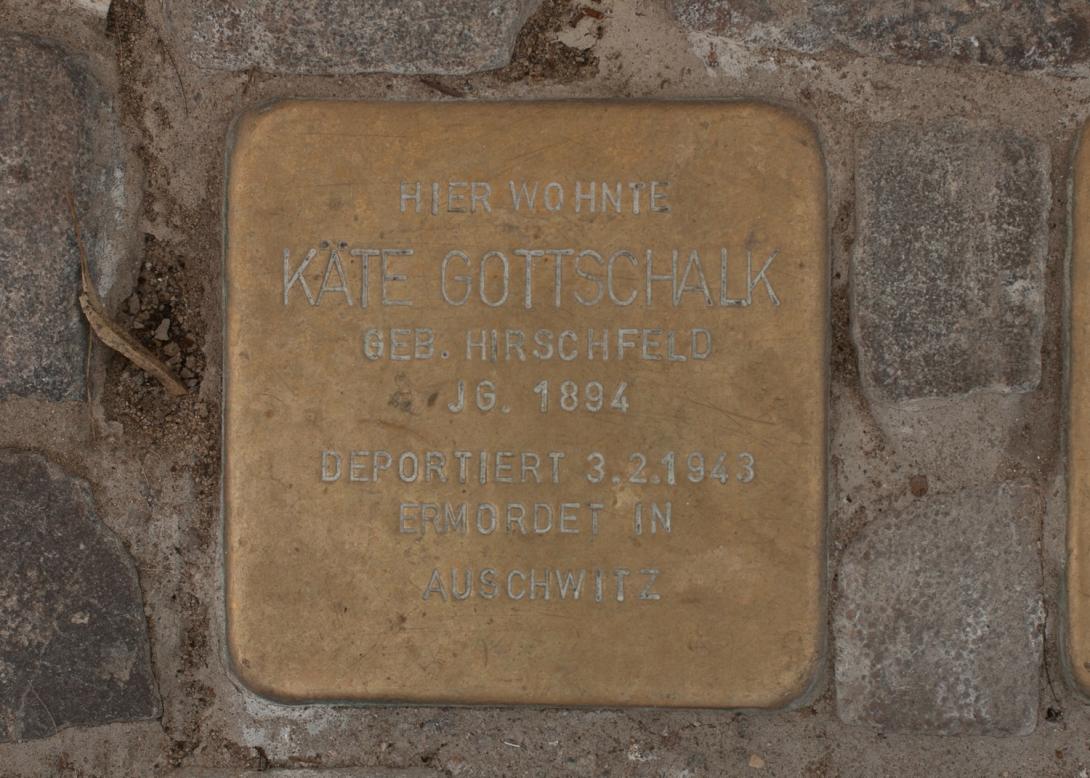 Helmut (manchmal auch Helmuth geschrieben) Gottschalk ist am 9. Oktober 1892 in Magdeburg geboren, Käte (auch Käthe geschrieben) Gottschalk, geb. Hirschfeld, am 17. September 1894 in Bielefeld. Am 15. Dezember 1930 wurde in Berlin der Sohn Gerd-Günter Gottschalk geboren. Alle drei wurden, vermutlich aus ihrem Unterschlupf in der Witzlebenstraße, zunächst in die Hamburger Straße 26 transportiert und nach der Registrierung am 3. Februar 1943 nach Auschwitz deportiert.