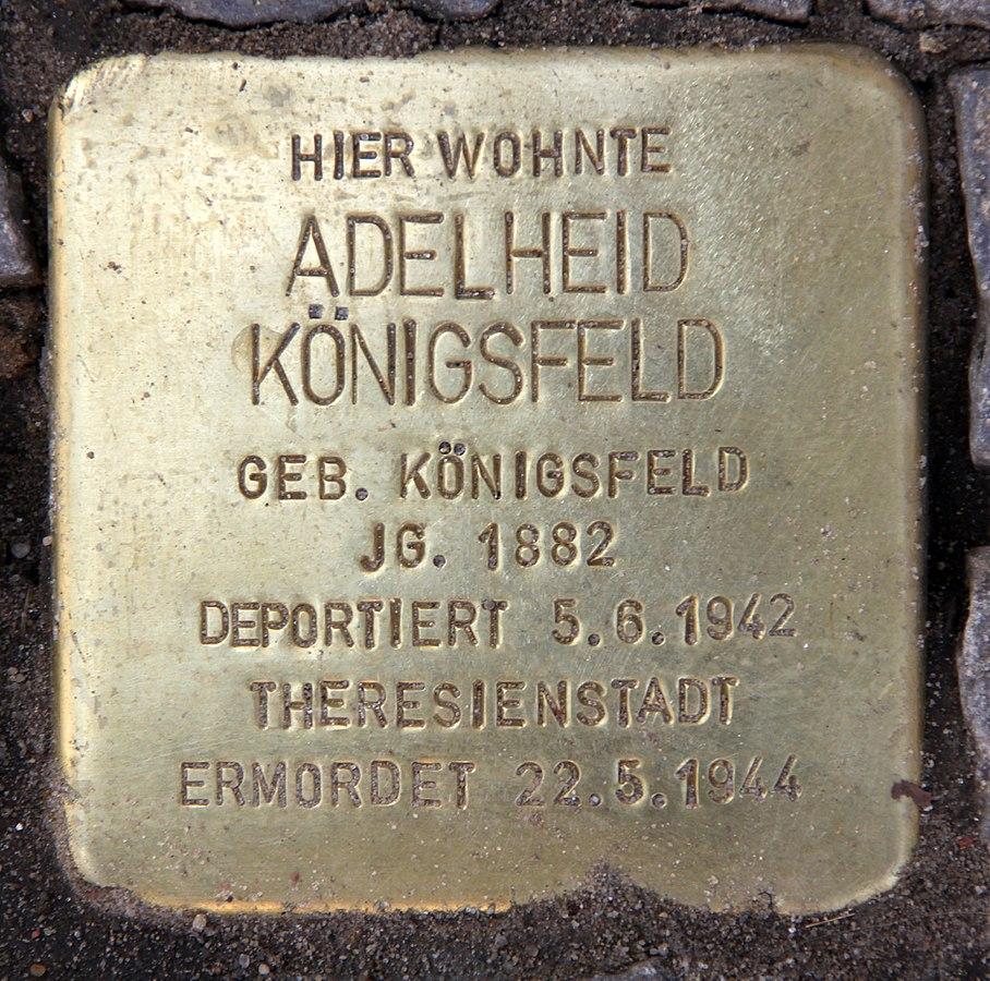 Adelheid und Otto Königsfeld hatten nach der endgültigen Begnadigung am 1. Mai noch genau vier gemeinsame Wochen in Freiheit. Am 27. Mai 1942 wurde Otto Königsfeld plötzlich verhaftet und am 28./29. Mai im KZ Sachsenhausen mit 249 weiteren jüdischen Männern erschossen. Eine Woche später, am 5. Juni, wurde Adelheid Königsfeld zusammen mit knapp 100 Angehörigen der ermordeten Männer in einer von Eichmann geplanten Aktion in das Konzentrationslager Theresienstadt deportiert. Sie widerstand den unmenschlichen Lebensbedingungen im Lager noch fast zwei Jahre, bis sie am 22. Mai 1944 starb.