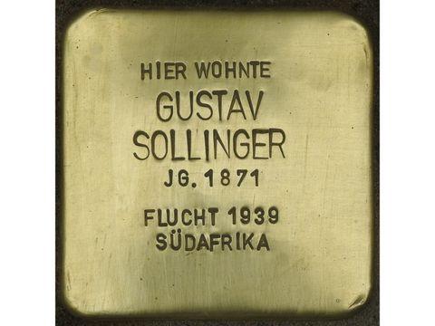 Zum Zeitpunkt ihrer Heirat im Jahr 1907 wohnten Gustav und Lottie in der Berchtesgadener Straße 33 in Berlin Schöneberg. Von 1929 bis 1931 in der Neuen Kantstraße 2 und ab dann in der Sybelstraße 67 in Charlottenburg. Im Juli 1938 wurde die Bank „arisiert“ und aus dem Handelsregister gelöscht. Die Nachbesitzer verrechneten Sollingers Wertpapierbestand mit der gesetzlichen Reichsfluchtsteuer und der von ihm zu zahlenden Judenvermögenssteuer. Nachdem die Kosten für die Schiffspassage inklusive Transport der Möbel gedeckt waren, blieben dem Paar keinerlei finanziellen Mittel mehr für einen Neuanfang in Südafrika.