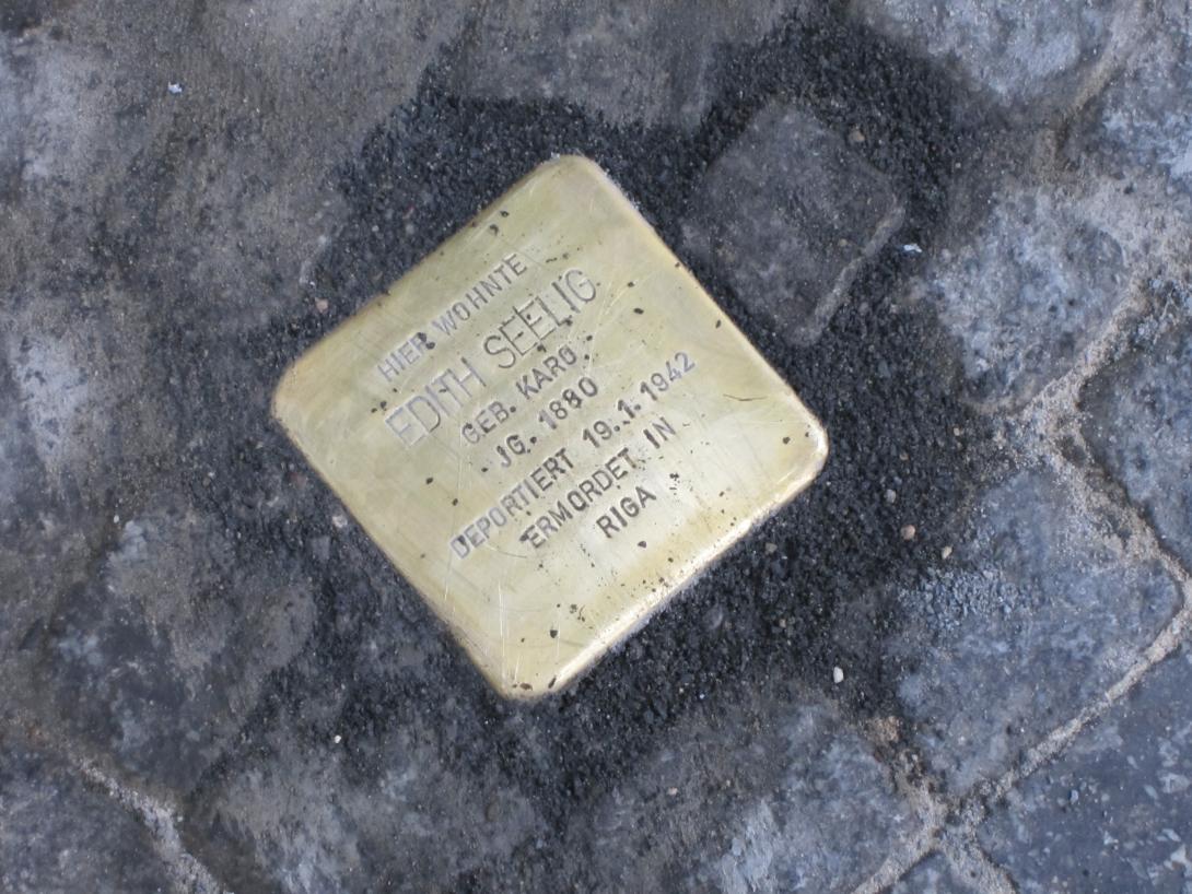 Edith Karo erblickte am 10. Dezember 1880 als Tochter von ??? und ??? in Berlin das Licht der Welt. Über ihre Kindheit und Jugend ist nichts Näheres bekannt. Sie war mit dem Frauenarzt Dr. Alfred Seelig verheiratet, der am 11. September 1868 in Schwedt geboren worden war. Am 3. Februar 1902 kam die Tochter Käthe und am 12. November 1904 der Sohn Walter Heinz zur Welt. Die Familie wohnte seit dem 1. April 1909 in der Tauentzienstraße 7 in einer Neunzimmer-Wohnung, in der Dr. Alfred Seelig auch seine erfolgreiche gynäkologische Praxis und Frauenklinik führte. Ihr Mann starb 1936 und hinterließ seiner Frau, seinem Sohn und seiner Tochter zu gleichen Teilen das Haus. Auf dem Grundstück mit Vorder- und Gartenhaus waren insgesamt ca.15 Wohnungen, darunter vier große Geschäfte, ein Bierrestaurant und Büroläden (Münchener Löwenbräu, Homöopathischer Central-Verlag) im Vorderhaus, und erbrachte ca. 5.000,-- RM monatlich an Mieterträgen. Seit September 1925 schon wohnte die Tochter Käthe, zusammen mit ihrem Mann, dem Rechtsanwalt und Notar Dr. Walter Nathan Hirsch, und ihren sechs Kindern dort in einer Fünf-, dann Sieben-Zimmerwohnung. Edith Seeligs sechs Enkel Manfred, Marianne, Ulrich Steffen, Dieter Wolfgang, Dorothea Maria und Alice kamen zwischen 1926 und 1937 allesamt in der Tauentzienstraße 7 zur Welt. Das Haus war geräumig genug, dass Dr. Walter Nathan Hirsch hier auch noch seine gutgehende Rechtsanwalts- und Notarpraxis im Gartenhaus unterbringen konnte. Seine Frau hatte zudem eine Mitgift in Höhe von 180.000,-- RM mit in die Ehe gebracht, die als Hypothek auf das Grundstück Tauentzienstraße eingetragen wurde. Edith Seelig begnügte sich nach dem Tod ihres Mannes mit einer Dreizimmer-Wohnung mit Diele, einem Flur, einer Küche, einer Mädchenkammer, einem Bad und einer Toilette. Ihr Sohn Dr. Walter Heinz Seelig, der wie sein Schwager Rechtsanwalt war, emigrierte noch rechtzeitig in die USA. Nachdem Edith Seeligs Schwiegersohn Walter Nathan bereits 1935 Berufsverbot als Notar erhalten hatte, 1938 kurzzeitig in "