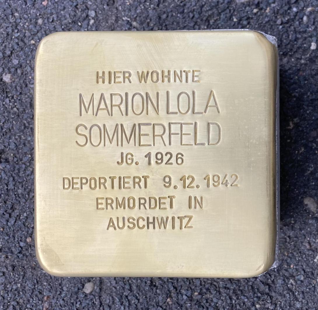 Marion wurde am 03.05.1926 in Berlin als Tochter von Herta Sommerfeld (geb. 8.4.1902 in Berlin) geboren. Von ihrer Kindheit wissen wir nur sehr wenig. Ebenso wenig über ihren leiblichen Vater. Während ihre Mutter in der Bruchsaler Straße 12 in Wilmersdorf wohnte, lebte sie wohl spätestens seit 1939 zusammen mit ihren Großeltern Betty und Benjamin (Benno) Sommerfeld im Hause des Bankiers Ludwig Simon im Tietzenweg 54 in Lichterfelde. Seit Ostern 1936 war sie Schülerin der 1935 gegründeten Joseph Lehmann Schule der jüdischen Reformgemeinde in der Joachimsthaler Straße 13, ab 1939 der dort eingerichteten VIII. Privaten Volksschule der jüdischen Gemeinde zu Berlin.