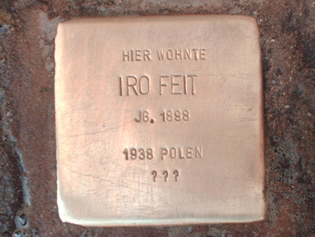 Die Familie Feit wohnte Mitte der 1930er Hajre in Berlin-Mitte in der Lothringer Str. 34/35 (der heutigen Torstraße 89) in einer Zweizimmerwohnung. Iro Feit wurde am 28. November 1898 in Dukla geboren. Seine spätere Ehefrau Sura Ryfka Feit kam am 10. April 1899 in Zernica zur Welt. Ihr gemeinsamer Sohn Berthold wurde am 09. März 1928 in Berlin geboren. Der Sohn Berthold musste Zwangsarbeit leisten als Arbeiter bei Siemens-Halske mit einem Wochenlohn in Höhe von 19,- Reichsmark. Sura Feit wurde mit ihrem Sohn Berthold mit dem 34. Osttransport am 4. März 1943 nach