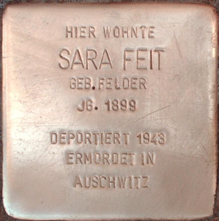Die Familie Feit wohnte Mitte der 1930er Hajre in Berlin-Mitte in der Lothringer Str. 34/35 (der heutigen Torstraße 89) in einer Zweizimmerwohnung. Iro Feit wurde am 28. November 1898 in Dukla geboren. Seine spätere Ehefrau Sura Ryfka Feit kam am 10. April 1899 in Czernitz (heute Żernica) zur Welt. Ihr gemeinsamer Sohn Berthold wurde am 09. März 1928 in Berlin geboren. Der Sohn Berthold musste Zwangsarbeit leisten als Arbeiter bei Siemens-Halske mit einem Wochenlohn in Höhe von 19,- Reichsmark. Sura Feit wurde mit ihrem Sohn Berthold mit dem 34. Osttransport am 4. März 1943 nach