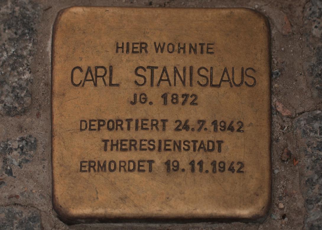 Zur Erinnerung an Carl und Meta Stanislaus sind, auch wenn sie am Ende ihres Lebens getrennte Wege gingen und einzeln in den Tod geschickt wurden, Stolpersteine an dem Ort gelegt worden, wo sie und ihr überlebender Sohn Karl-Heinz zusammen gewohnt hatten.