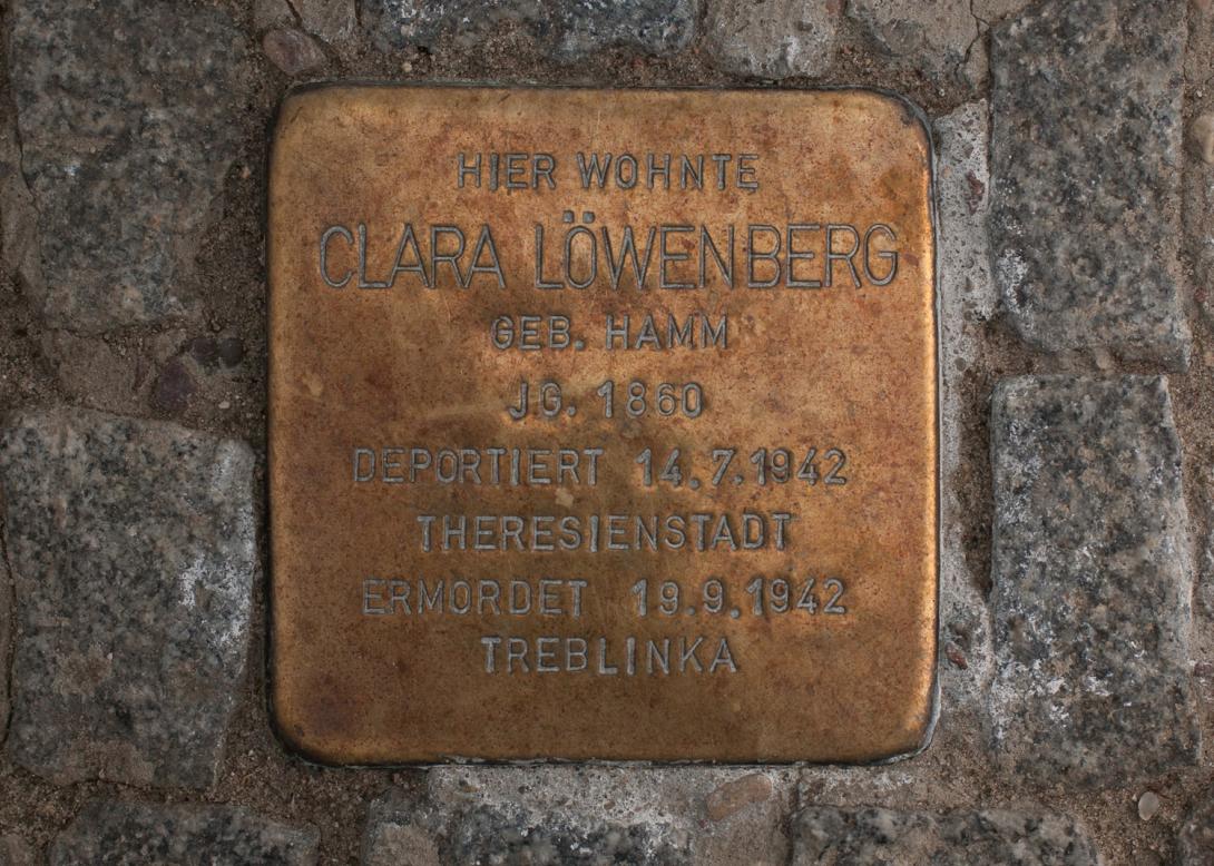 Am 14. Juli 1942 wurde Clara Löwenberg aus dem Olga-Stern-Heim im Jüdischen Krankenhaus, das auch als Sammellager fungierte, zusammen mit 35 anderen Heimbewohnerinnen und 10 Heimbewohnern mit dem 21. Alterstransport von der Gestapo in das Ghetto Theresienstadt deportiert. Zwei Monate später wurde sie am 19. September 1942 in das Vernichtungslager Treblinka gebracht und dort ermordet. Clara Löwenberg starb mit 82 Jahren.
