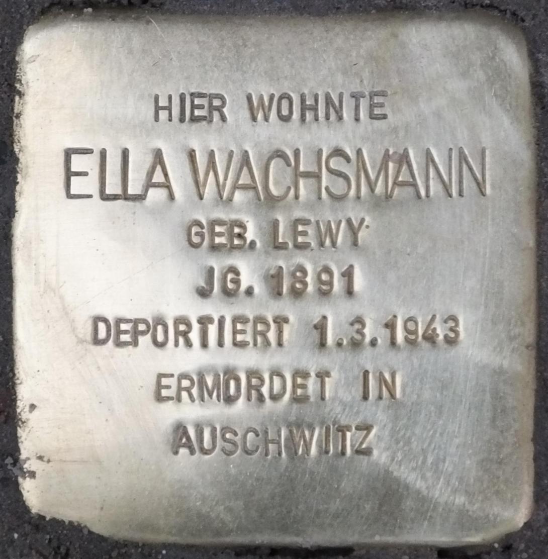 Ella Wachsmann wurde am 1. März 1943 vom Bahnhof Grunewald nach Auschwitz deportiert und dort zu einem unbekannten Zeitpunkt ermordet.