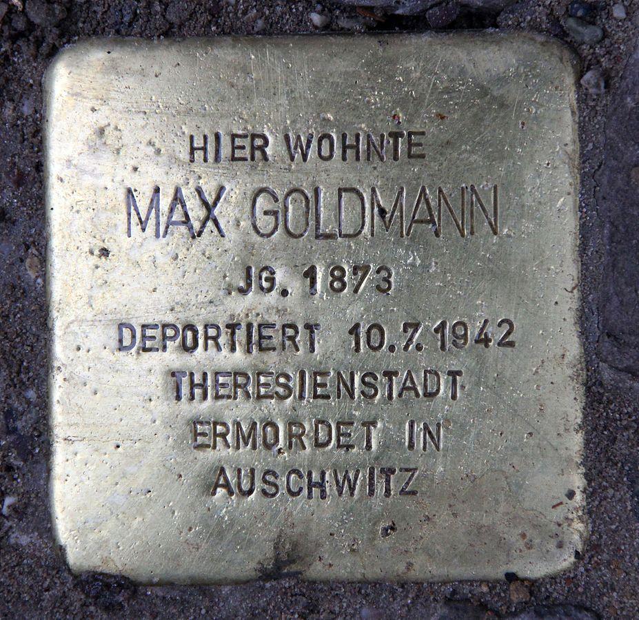 Max Goldmann ist am 23. September 1873 in Berlin geboren. Mit seiner Ehefrau Emmy wohnte er in der Uhlandstraße 155. Im Adressbuch war er als Ingenieur verzeichnet.