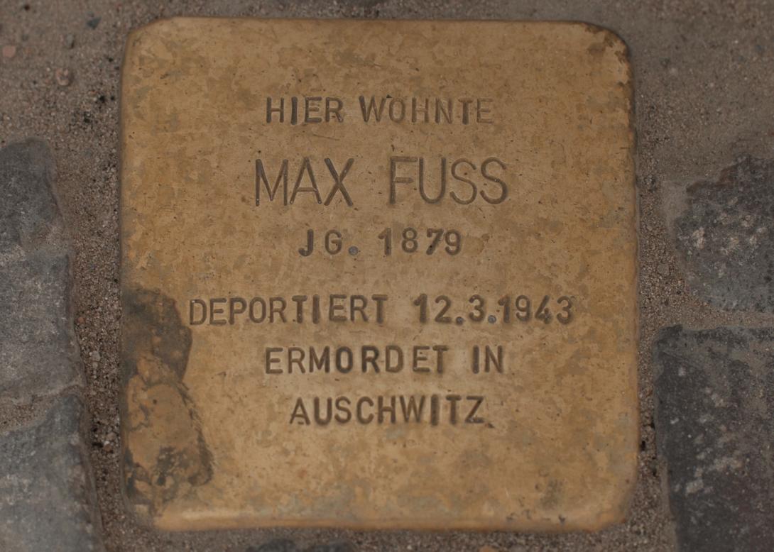 Max Fuss wurde am 31. März 1879 in Schrimm (Srem) in der Region Posen (Poznan) geboren. Seine Frau Gertrud Fuss, geb. Grün, wurde geboren am 18. April 1893 in Posen (Poznan). Sie lebten bis zu ihrer Verhaftung durch die Geheime Staatspolizei (