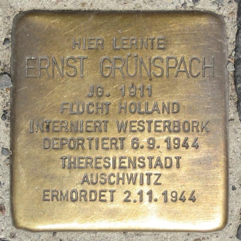 Ernst Abraham Adolf Grünspach wurde am 11. Oktober 1911, in Krotoschin (damals in der preußischen Provinz Posen, heute Krotoszyn in Polen) geboren. Aus Mangel an biografischen Quellen konnten wir keine Informationen zu seiner Kindheit und Jugend finden.
