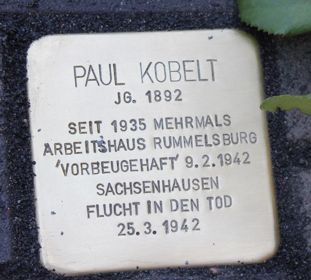 Only fragmentary details of Paul Kobelt’s life are known: He grew up with his parents and left school early to start an apprenticeship as a machine assistant in a paper factory. In 1910, he left home for Berlin, where he took work as a domestic servant. In 1916, he sustained a hand injury while serving in the First World War. He remained a soldier after the war, stationed at the Glogau fortress. In 1919, he was summonsed before a military court for taking absence without leave. He did so several times in the following months and received the corresponding punishments.