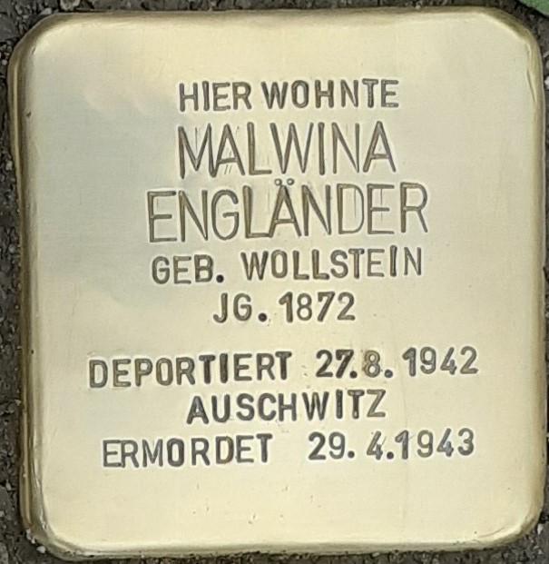 Am 27.08.1942 wurde Malwina im Alter von 70 Jahren ins Ghetto Theresienstadt deportiert und ermordet. Ihr Tod ist auf den 29.04.1943 datiert.