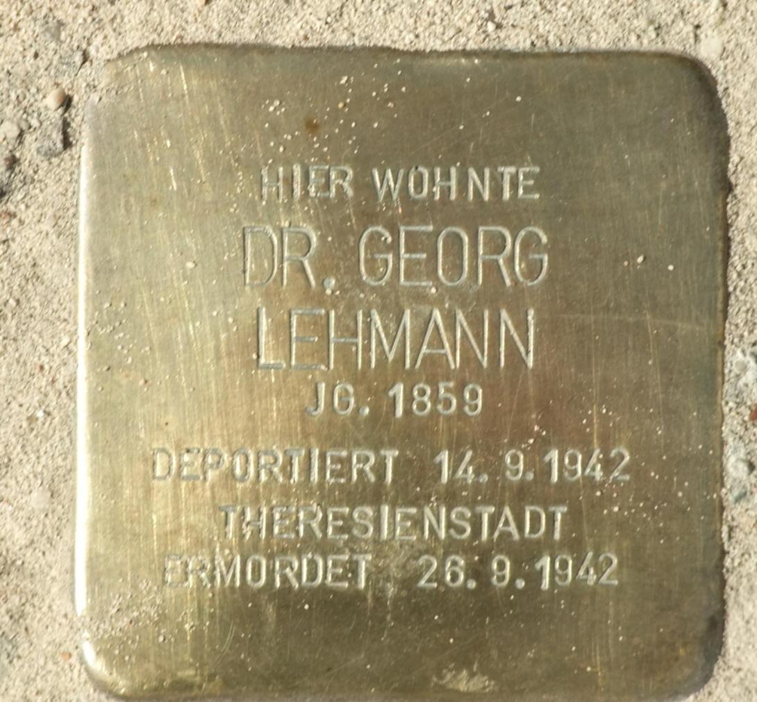 Am 14. September 1942 wurde Dr. Georg Lehmann zusammen mit seiner Ehefrau Olga Henriette nach Theresienstadt deportiert. Mit dem „2. großen Alterstransport“ wurden vom Güterbahnhof Moabit (Putlitzstraße) aus 1000 Berliner Jüdinnen und Juden in das im böhmischen Protektorat liegende Ghetto gebracht. Georg Lehmann überlebte nur kurze Zeit – elf Tage nach seiner Ankunft starb er am 26. September 1942. Die Angabe „Darmkartarrh“ auf seiner Todesfallmeldung ist rückblickend zugleich ein Synonym für Mangelernährung, ärztliches Desinteresse und unwürdige Unterkünfte mit desaströsen hygienischen Verhältnissen.