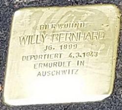 Anders als seine Schwiegermutter, die noch vor Kriegsbeginn zu ihrer Tochter nach Südafrika emigrieren konnte, schaffte es Willy Bernhard nicht, sich vor den Verfolgungen der Nazis mit Frau und Kind in Sicherheit zu bringen. Bei der Deutschen Reichsbahn wurde er zur Zwangsarbeit mit Gleisbauarbeiten im Bautrupp 6 verpflichtet. Am 4. März 1943, zwei Tage vor seiner Frau und seiner Tochter, wurde er mit dem 34. Osttransport nach Auschwitz deportiert.
