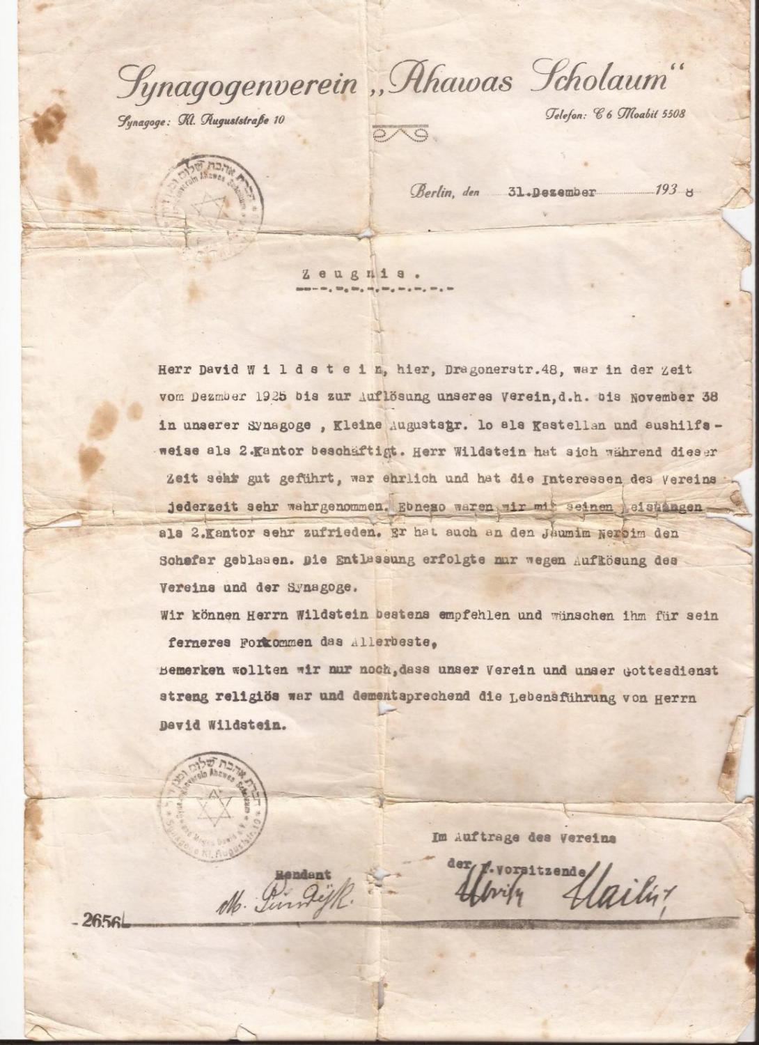 Im Oktober 1938 wurde er zusammen mit seiner Frau im Zuge der sogenannten Polenaktion abgeschoben und nahe der deutschen Grenze im polnischen Zbąszyń (dt. Bentschen) inhaftiert. Das weitere Schicksal der Eheleute ist nicht genau bekannt. Sie überlebten die Kriegsjahre nicht und sind sehr wahrscheinlich in Polen gestorben.
