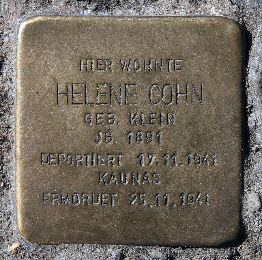 Nach dem Ende des Krieges verbesserte sich die Situation der Familie. John Cohn arbeitete als kaufmännischer Schreiber, wurde 1920 Bürogehilfe und ein Jahr später Hilfsbeamter in der Berliner Magistratur. 1922/1923 wurde er als Beamter vereidigt, verstarb aber noch im Jahr 1923. Helene Cohn war zu diesem Zeitpunkt 12 Jahre alt. Ihr Vater wurde auf dem Jüdischen Friedhof Weißensee beigesetzt. Nach dem Tod ihres Vaters eröffnete ihre Mutter Mitte der 1920er-Jahre ein kleines Lebensmittelgeschäft in unmittelbarer Nachbarschaft ihrer Wohnung in der Czarnikauer Straße 11. Helene und Helga arbeiteten nach Schulabschluss und Ausbildung als Verkäuferinnen im KaDeWe. 1928 heiratete ihre Schwester Ruth ihren Cousin Alfred Korytowski, den Sohn des Bruders von Bertha Cohn, und zog mit ihm zu seiner Familie nach Breslau. Bruder Harry und seine 1916 geborene Ehefrau Liselotte Bütow emigrierten 1938 nach Belgien. Ihnen folgte 1939 auch Helenes Schwester Ruth Korytowski mit Ehemann und den 1929 und 1931 geborenen Kindern Horst und Renate aus Breslau nach. Auf einer Zwischenstation in Berlin kam sie mit der Familie in der Czarnikauer Straße 12 unter. Hier sahen sich die Schwestern ein letztes Mal. In Berlin blieben die ledigen Zwillingsschwestern Helene und Helga, die sich um ihre verwitwete Mutter Bertha kümmerten.