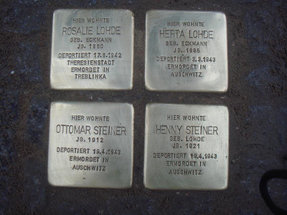 in Kersdorf abgeholt und mit dem „37. Osttransport“ unter den laufenden Nummern 548 und 549 nach Auschwitz deportiert. Von Henny kamen aus Auschwitz-Birkenau am 25. März und 15. Juni 1943 noch zwei Postkarten bei Verwandten in Berlin an. Sie betonte darin, sie sei „gesund“, und fragte nach ihrem Mann „Otti“, von dem sie offenbar im Lager getrennt worden war. Beide überlebten Auschwitz nicht. Ihre Großmutter Rosalie Lohde wurde am 17. August 1942 nach Theresienstadt deportiert und später in Treblinka getötet. Ihre Mutter Herta Lohde, die im Rahmen der „