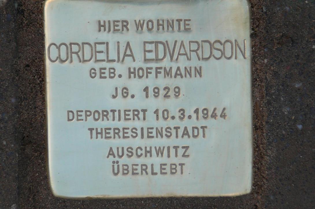 She was surprised to hear that a Stolperstein was being laid in Eichkamp, saying: “…to think that anyone in Eichkamp still thinks about me”. She died on 29 October 2012, aged 83, in Stockholm. As well as her autobiographical novel “Burned Child Seeks the Fire” (Beacon Press 1998, awarded the Geschwister Scholl Prize for literature), she also published “Die Welt zusammenfügen” (1989) and a book of poetry, “Jerusalems Lächeln” (1991). In 2001 she received the Royal Prize of the Swedish Academy. She wrote in Swedish because she had, as she said in an interview, “been robbed” of the German language.