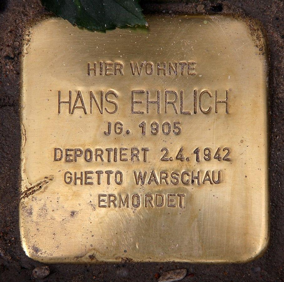 Ernst und Hans wurden am 2. April 1942 zusammen mit ihrer Mutter Hedwig aus ihrer Wohnung abgeholt und in das Warschauer Ghetto deportiert. Hedwig Ehrlichs Leben fand dort das grausame Ende. Ihr beiden 37- und 41jährigen Söhne mussten noch im Lager Trawniki, Lublin Zwangsarbeit leisten, bevor sie zu einem unbekannten Zeitpunkt ermordet wurden.