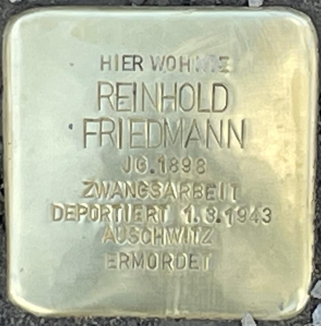 Reinhold Friedmann was born in East Prussia in 1898. He was a clothing merchant until he was banned from his profession. In 1939 he was a tenant of an apartment at Flensburger Straße 11, where he was still named as a resident in 1942.