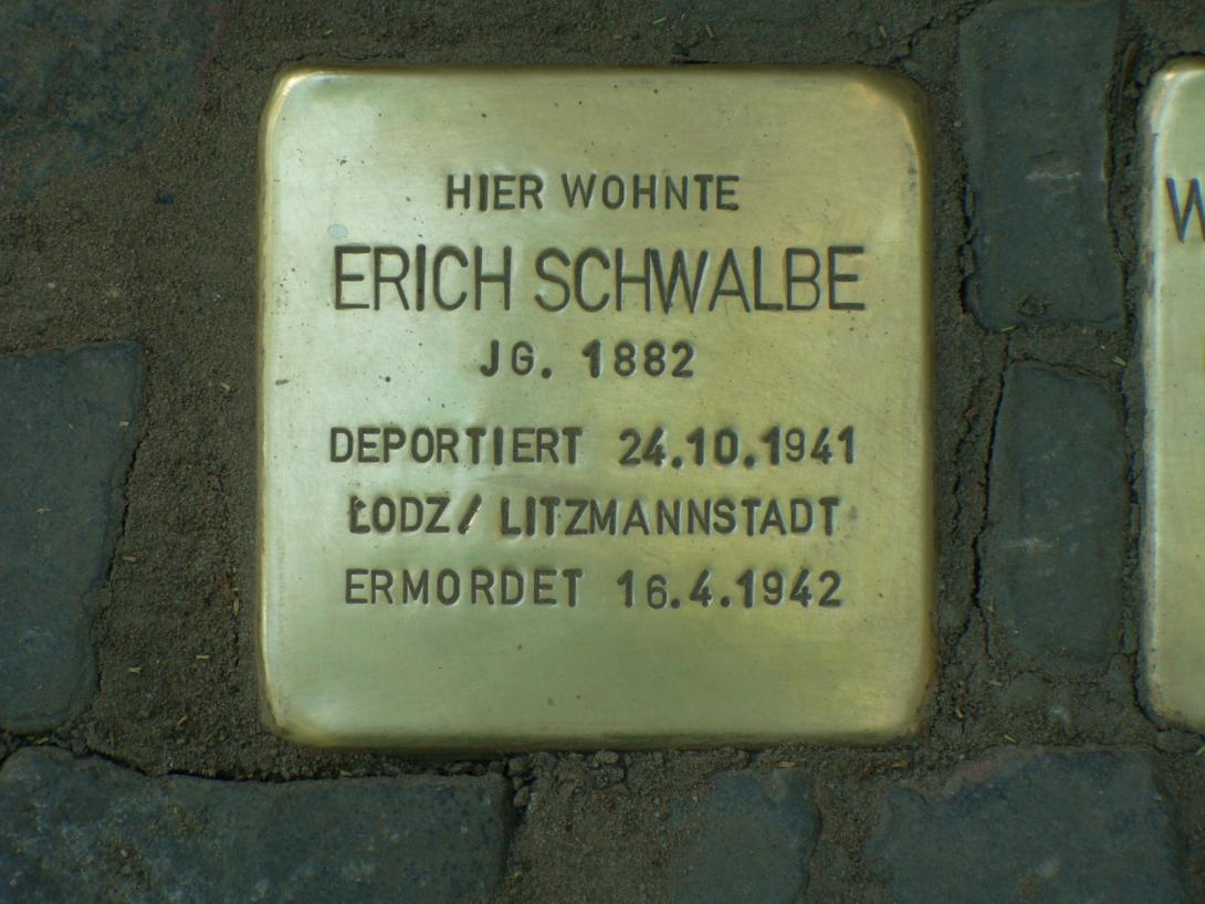 Am 4. November 1941 wurde der „Deportationserlass“ verkündet: „Juden, die nicht in volkswirtschaftlich wichtigen Betrieben beschäftigt sind, werden in den nächsten Monaten in eine Stadt in den Ostgebieten abgeschoben. Das Vermögen der abzuschiebenden Juden wird zugunsten des Deutschen Reiches eingezogen [...]“. Zu diesem Zeitpunkt waren aus Berlin schon vier „Transporte“ in das Ghetto Lodz - von den Nationalsozialisten Litzmannstadt genannt – erfolgt, der erste am 18. Oktober 1941. Zu den etwa 1000 Opfern, die am 24. Oktober 1941 in dem zweiten Zug nach Lodz deportiert wurden, gehörten auch Erich, Gertrud und Wolfgang Schwalbe sowie Gertruds Mutter Olga Lilienthal.