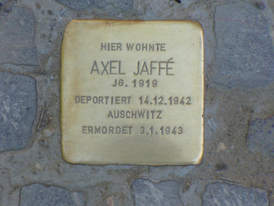 Alfred Jaffé wurde am 30. August 1919 in Frankfurt a.M. geboren. Wer seine Eltern waren und wann er nach Berlin kam, ist nicht bekannt. 1939 war er bei der Volkszählung, die am 17. Mai stattfand, als Untermieter von Paul und Irma Feldmann gemeldet. Auch über sein Leben gibt es keine Dokumente. Sicher ist nur, dass er zuletzt Zwangsarbeit leisten musste. Am 14. Dezember 1942 ist er über die Sammelstelle in der Großen Hamburger Straße 26 vom Güterbahnhof Moabit mit 815 Insassen nach Auschwitz deportiert worden. Einige der Jüngeren wurden als “arbeitsfähig“ einsortiert, aber auch sie sind spätestens im Februar 1943 umgebracht worden. Um diese Zeit wurden auch seine Vermieter nach Auschwitz deportiert.