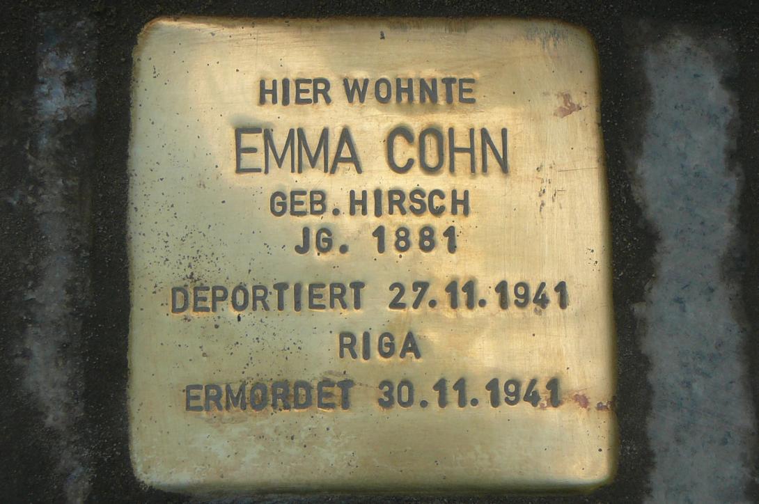 Emma Cohn, geb. Hirsch, am 30.11.1881 in Deutsche Krone geboren, war die Ehefrau von Waldemar Cohn.