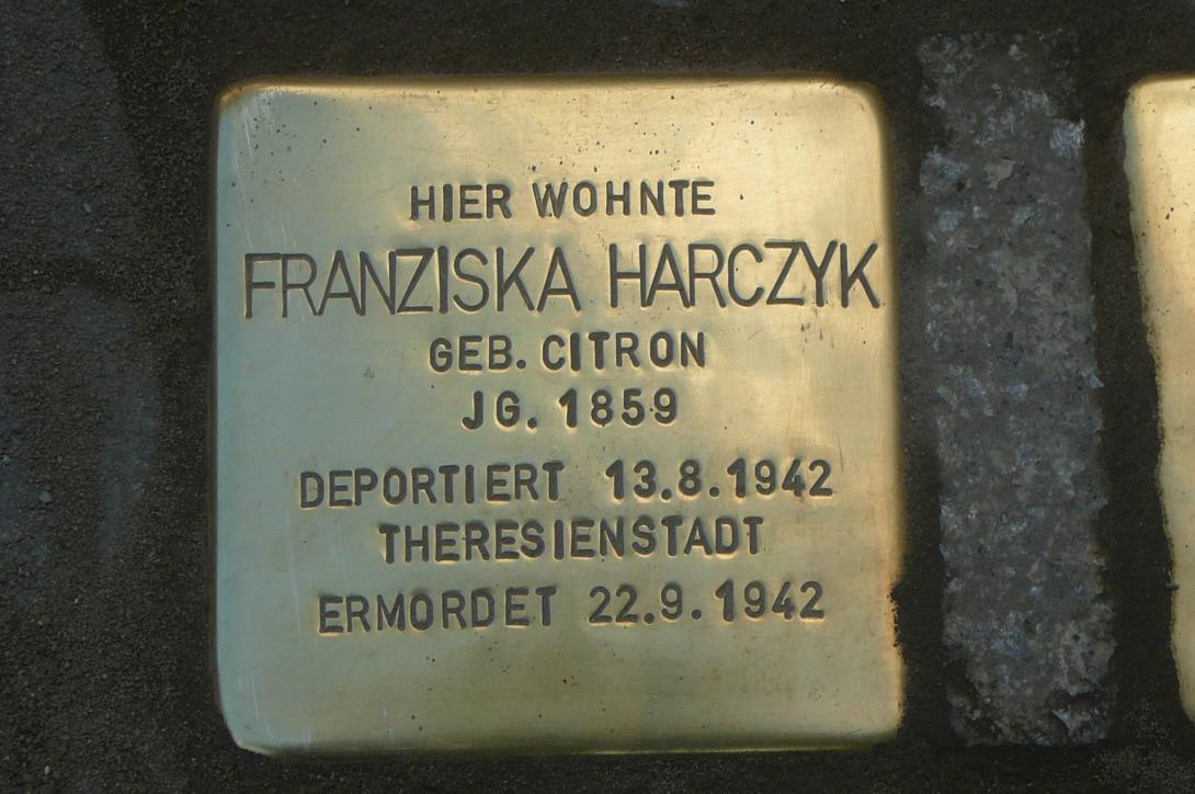 Franziska und ihr Bruder Sally wurden im August 1942 im als Sammellager missbrauchten jüdischen Altersheim in der Großen Hamburger Straße 26 interniert und am 13. August nach Theresienstadt deportiert. Im Ghetto Theresienstadt sollten Juden angeblich einen ruhigen Lebensabend verbringen können. Tatsächlich erwarteten sie bei unbeschreiblichen Hygienezuständen im hoffnungslos überfüllten Lager Hunger und Kälte, Krankheiten und Seuchen. Wenige überlebten diese Bedingungen. Sally Citron starb am 11. September 1942, Franziska elf Tage später, am 22. September, offiziell an Altersschwäche. Hinter den Todesursachen auf den „Todesfallanzeigen" verbergen sich allerdings die wirklichen Gründe - die menschenverachtenden Lebensumstände im Ghetto.