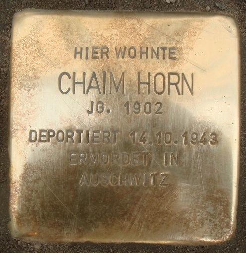 Nach der Pogromnacht 1938 verlor Chaim Horn aufgrund der eingeleiteten antijüdischen Maßnahmen seine Gewerbeerlaubnis und musste 1939 Haus und Geschäft weit unter Preis zwangsverkaufen. In der Pogromnacht 1938 wurden Chaim Horn und seine Frau Machla außerdem von der Gestapo in ihrer Wohnung verhaftet und bis zum nächsten Tag in Potsdam festgehalten. Ihre Kinder blieben allein in der Wohnung in der Wollenweberstraße 41 zurück. Im Sommer 1939 verließ die Familie aufgrund dieser Erlebnisse Brandenburg und versuchte in den nachfolgenden Monaten vergeblich, von Berlin aus ihre Auswanderung nach Bolivien zu organisieren. Chaim Horn arbeitet zeitweilig in der Landwirtschaft, um das Geld für die Auswanderung zusammenzubekommen. Nachdem die Familie zunächst bei Machlas Mutter Rosa untergekommen war, fanden sie im Sommer 1940 eine Unterkunft in einer Kellerwohnung in der Großbeerenstraße 92 in Berlin-Kreuzberg. Vermieter war Otto Weidt, der bis zu diesem Zeitpunkt diese Zimmer als Werkräume für seine Blindenwerkstatt genutzt hatte. Otto Weidt gab Familie Horn mit dieser Wohnung nicht nur eine günstige Unterkunft, sondern beschäftigte auch den ehemaligen Bürstenmacher und Fabrikanten Chaim Horn als gut bezahlten Leiter der Zurichterei in der Blindenwerkstatt in der Rosenthaler Straße 39 in Berlin-Mitte. Die Blindenwerkstatt produzierte Bürsten und andere Produkte aus Borsten und Rosshaar. Chaim Horn war mit 55 RM Wochenlohn der bestbezahlte Angestellte der Blindenwerkstatt. Sein Sohn Max, der ebenso wie seine Frau bei ihm das Handwerk des Bürstenmachens gelernt hatte, wurde von Otto Weidt ebenfalls beschäftigt. Ab 1941 mussten alle Mitglieder der Familie Horn den gelben Stern tragen. Als die Horns Anfang 1943 ihre Deportation aus Berlin befürchteten, bat Chaim Horn Otto Weidt um Hilfe. Otto Weidt riet Chaim Horn, mit seiner Familie unterzutauchen, und bot als Versteck einen Raum hinter der Werkstatt an, der nur durch einen Kleiderschrank von den eigentlichen Arbeitsräumen der Blindenwerkstatt abgetrennt war. Nachts waren die Horns nun im Versteck untergebracht, am Tage arbeiteten sie in der Werkstatt. Anfang Oktober 1943 wurde die Familie jedoch durch den Spitzel Rolf Isaaksohn an die Gestapo verraten. Bei einer nachfolgenden Razzia in der Blindenwerkstatt wurden Chaim, Malcha, Max und Ruth verhaftet und am 14. Oktober 1943 zusammen mit anderen nach Auschwitz deportiert und dort ermordet.