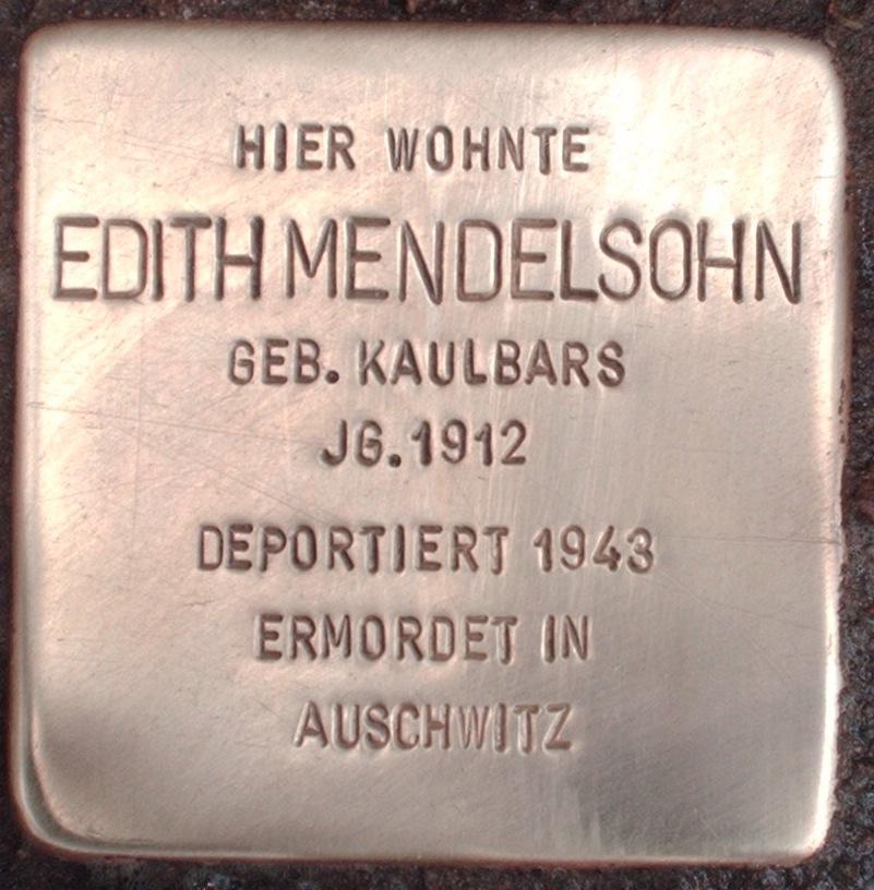 Edith Dorothea Kaulbars wurde am 18. Dezember 1912 in der damals ostpreußischen Kleinstadt Wartenburg (dem heutigen Barczewo, das etwa 120 Kilometer südlich von Kaliningrad liegt) geboren. Sie war die Tochter des 1871 in Johannisburg (Pisz) geborenen Textilienhändlers Julius Kaulbars und der Johanna Kaulsbars, geborene Kiewe. Edith wuchs im Kreis von zwei älteren Brüdern auf, dem 1909 geborenen Siegfried und dem 1910 geborenen Arthur. Über die Kindheit und Jugend von Edith Kaulbars und ihrer Geschwister in Wartenburg haben sich keine Informationen erhalten. Ihre Eltern gehörten aber aller Wahrscheinlichkeit nach der recht kleinen jüdischen Gemeinde der Stadt an, zu der zum Zeitpunkt der Geburt von Edith etwas mehr als 50 Personen zählten. Zu einem nicht genau bestimmten Zeitpunkt in den 1920er-Jahren zogen ihre Eltern und ihr Bruder Siegfried nach Lyck (dem heutigen Ełk). Edith und ihr Bruder Arthur zogen nach Berlin. Dort heiratete Edith Kaulbars in den 1930er-Jahren den verwitweten Schneidermeister Leo Mendelsohn und zog mit ihm in eine gemeinsame Wohnung in der Heinrich-Roller-Straße 17 im Prenzlauer Berg. Im Haus betrieb Leo Mendelsohn ab 1936 eine Maßschneiderei für Herren, mit der er das Einkommen der Familie bestritt und seinen seit einem Unfall 1931 invaliden Vater Hermann Mendelsohn unterstützte.