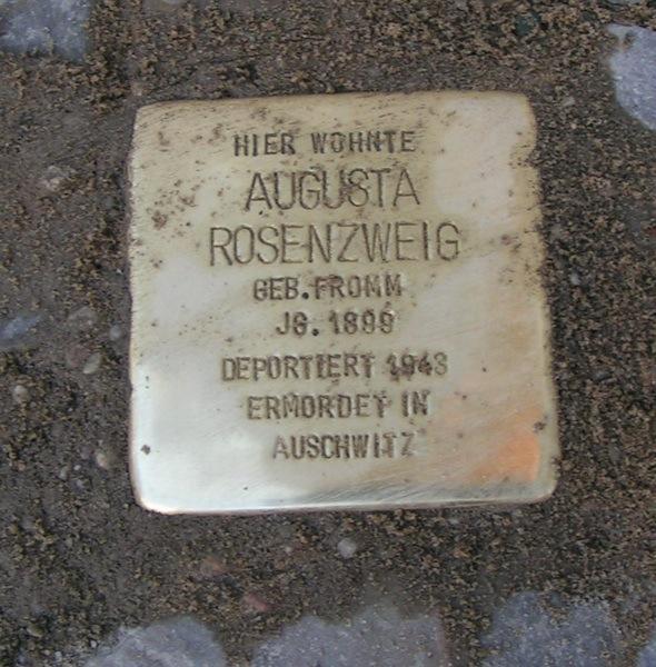 1939 wohnte Augusta Fromm in der Hubertusstraße 5 in Berlin-Steglitz bei Heinz Herman und Rosalie Freudenthal, geb. Steinmetz. Als Bürsteneinzieherin arbeitete sie in der Blindenwerkstatt Otto Weidt, bis sie am 12. Januar 1943 nach Auschwitz-Birkenau deportiert und dort ermordet wurde.