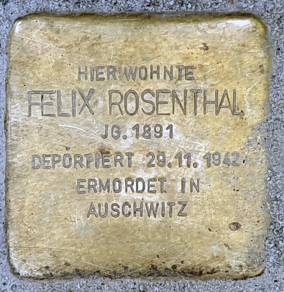 Der Entrechtung folgte die Deportation : Felix Rosenthal wurde mit seiner Frau Eugenie, der 16-jährigen Tochter Steffi und dem 12-jährigen Harry am 29. November 1942 mit dem 23. Osttransport nach Auschwitz deportiert und ermordet.