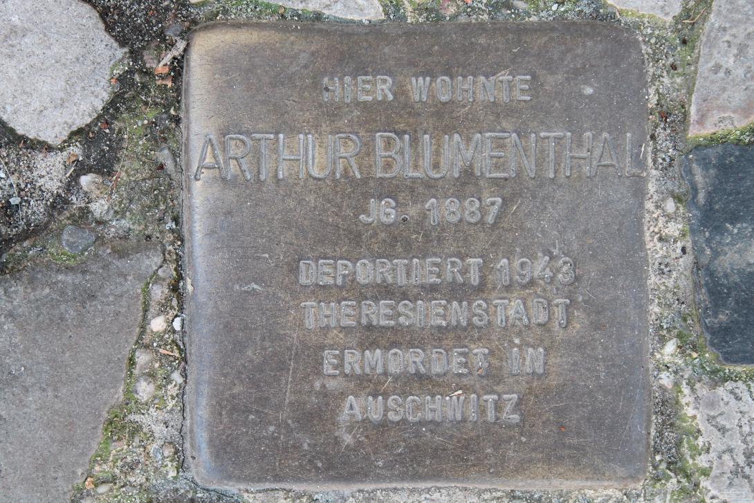 Arthur Blumenthal wurde am 17. März 1943 nach Theresienstadt deportiert. Nach mehr als einem Jahr im Ghetto , wurde er am 28. Oktober 1944 nach Auschwitz deportiert, wo der 67-Jährige vermutlich unmittelbar nach der Ankunft im Vernichtungslager ermordet.