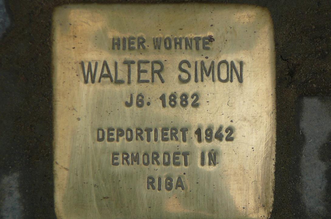 Walter Sally Simon wurde am 17. Oktober 1882 in Berlin geboren. Er war mit Helene Simon, geb. Hahn, verheiratet, die am 24. September 1886 ebenfalls in Berlin geboren worden war. Beide wohnten seit 1906 und noch 1941 in der Kantstrasse 130 im Vorderhaus, vermutlich im 2.Stock. Walter Simon, der Anwalt und Notar war, arbeitete 1941 als Angestellter (im Adressbuch: „Hilfsreferendar“) der Palestine & Orient Lloyd in der Meinekestraße 2, mit einem Gehalt von 234 RM monatlich. Die Kinder Carla, verheiratete Rachwalsky, und Helmut Stefan konnten aus Deutschland flüchten. 1941 vermerkten die Nazi-Behörden: „Anschrift unbekannt“. 1946 meldeten sie sich aus England.