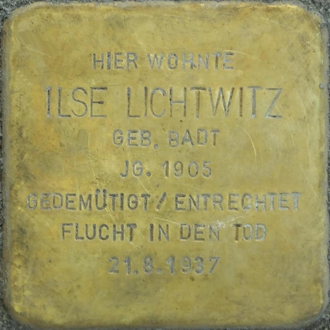 Ilse Lichtwitz kam am 23. April 1905 als ältestes Kind des Kaufmanns Albert Badt und Emmy Badt, geb. Wolff auf die Welt. Ihre Schwester Dora Minna wurde am 13. Juli 1906 geboren, der Bruder Erich Ludwig in Jahr 1918. Die Eltern hatten 1904 in Darmstadt geheiratet, die Kinder kamen aber in Berlin zur Welt. Die Familie wohnte damals in der Oranienburger Straße 13/14. Ilse wurde zur medizinisch – technischen Laborassistentin ausgebildet und heiratete 1929 den Juristen Max Lichtwitz. Sie hatten ein gemeinsames Kind, Heinz Albert Lichtwitz, geboren am 12. Juni 1932, später umbenannt in Henry Foner. Ilse Lichtwitz beging am 21. August 1937 Selbstmord. Ihr Grab befindet sich auf dem Jüdischen Friedhof Weißensee. Ihre Mutter Emmy Badt nahm sich ebenfalls das Leben. Sie starb am 27. Januar 1939 durch Freitod und wurde ebenfalls in Weißensee beigesetzt.