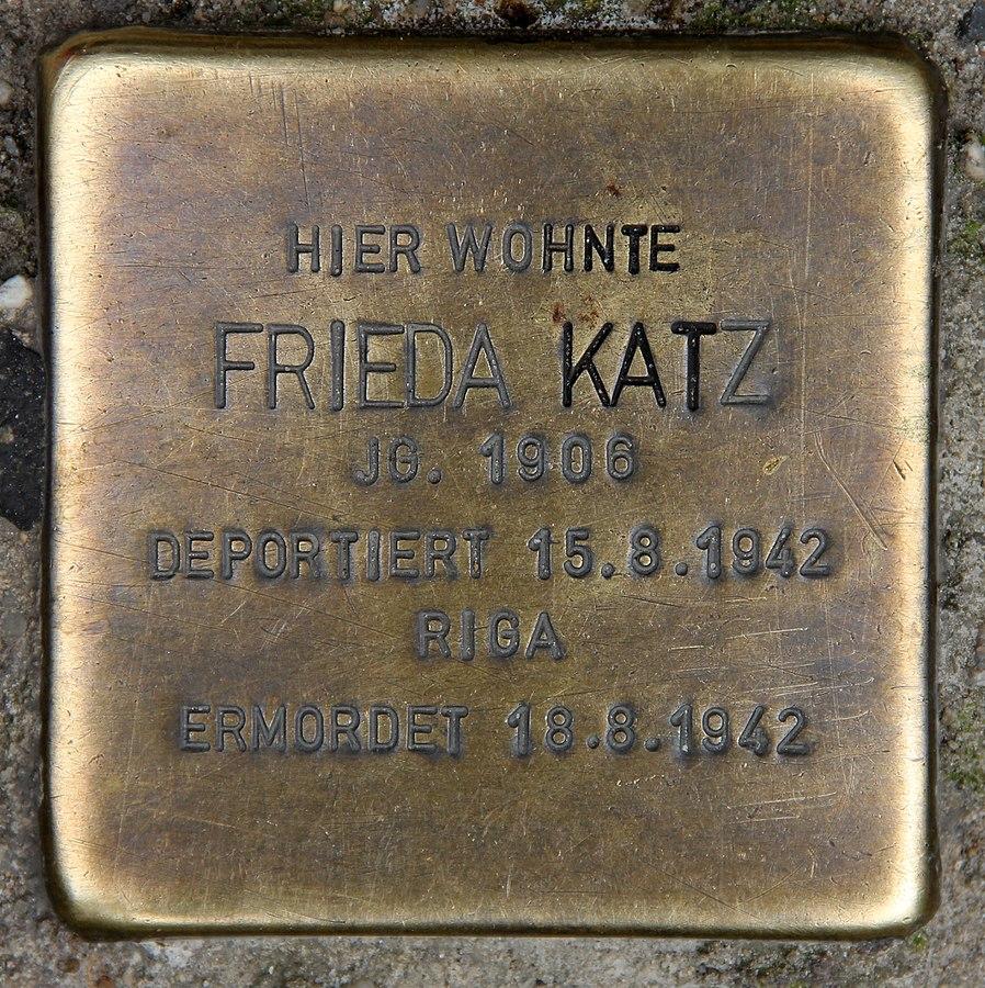 Am 15. August 1942 wurden Laja und Frieda Katz mit dem „18. Osttransport“ nach Riga deportiert. Sie wurden am 18. August 1942 im Wald von Rumbula, einem Stadtteil Rigas, in einer Massenerschießung ermordet.