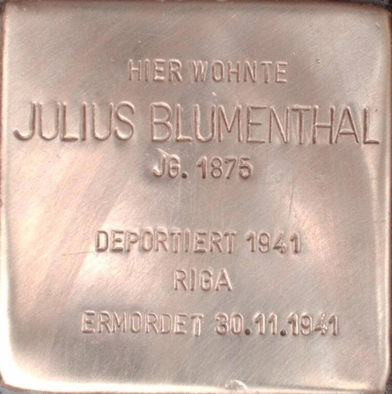 Das letzte uns heute erhaltene Lebenszeichen der Blumenthals ist, wie bei vielen anderen deportierten Juden, ihre Vermögenserklärung. Sie ist auf den 20. November 1941 datiert. Eine Woche später brachte man Betty und Julius mit dem 7. Osttransport von Berlin nach Riga, wo sie am 30. November 1941 ermordet wurden.