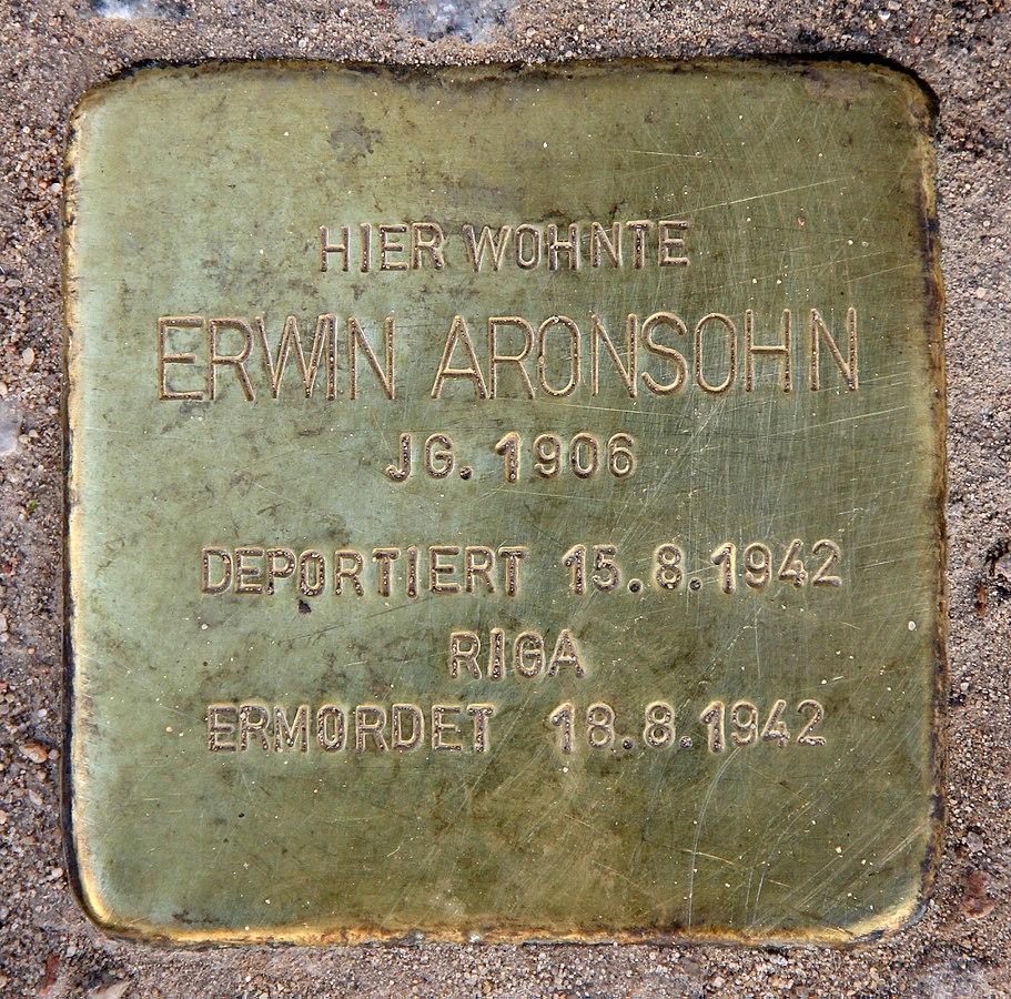 Im Mai 1942 musste seine Ehefrau sich in Bendorf-Sayn in der Jacoby’schen Anstalt einfinden, von dort wurde sie am 15.Juni nach Sobibor deportiert. Zwei Monate später erhielt Erwin Aronsohn die Vorladung zur Deportation . Am 15. August 1942 wurde er nach Riga transportiert und dort ermordet.