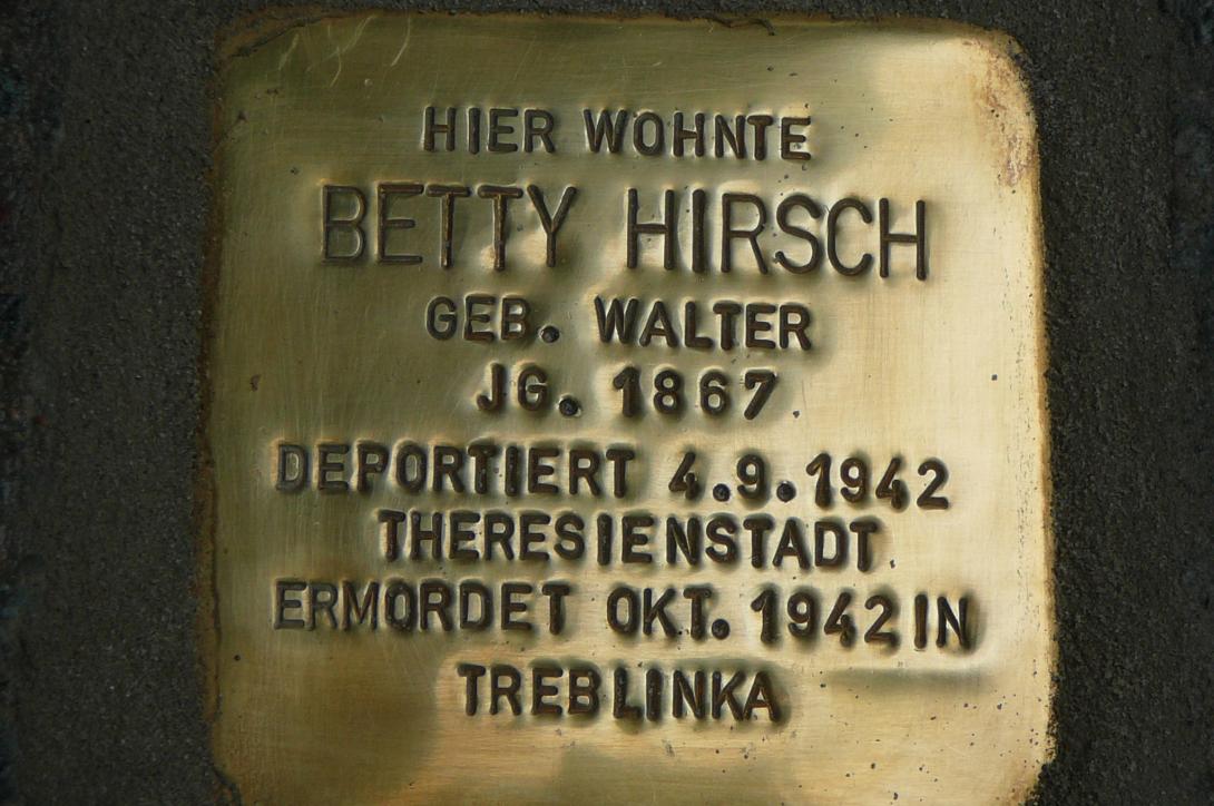 Zuletzt wohnte Betty Hirsch zur Untermiete bei dem Ehepaar Fritz und Toni Haber in der Reichsstraße 104 im gutbürgerlichen Charlottenburger Westend. Am 4. September 1942 wurde sie vom Anhalter Bahnhof aus nach Theresienstadt und von dort am 29. September 1942 weiter in das Vernichtungslager Treblinka transportiert. Im Oktober 1942 wurde Betty Hirsch in Treblinka ermordet.