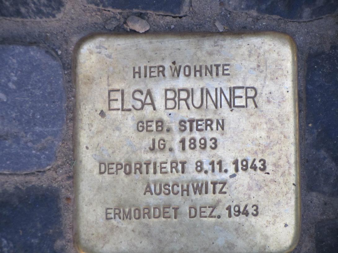 Rahel Stern hat 1955 in der Gedenkblätter-Sammlung bei Yad Vashem die Lebens- und Todesdaten ihrer Tochter niedergelegt. Am 8. November 1943 wurde Elsa Brunner mit einem als 46. Osttransport deklarierten Reichsbahn-Zug ins Vernichtungslager Auschwitz deportiert und im Dezember 1942 ermordet. Das genaue Datum ihres Todes ist nicht bekannt, sie wurde 49 Jahre alt.