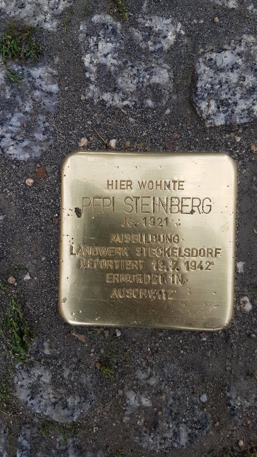 Sofie, her mother Chana Helene Steinberg and her sisters Gerda and Margot were deported with the 23rd „Osttransport“ from Berlin to Auschwitz on the 29th of November 1942. All four were murdered there.