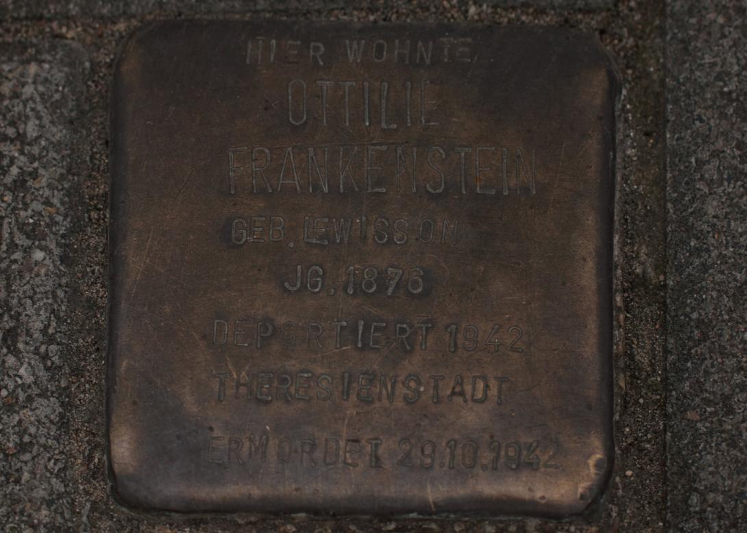 Ottilie und Selmar Frankenstein wurden am 3. Oktober 1942 mit dem „3. großen Alterstransport“ nach Theresienstadt deportiert Dr. Frankenstein wurde dort am 24. Oktober 1942 ermordet, Ottilie fünf Tage später am 29. Oktober.